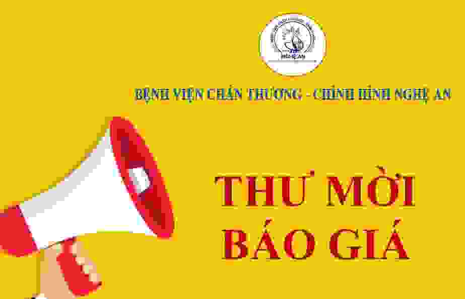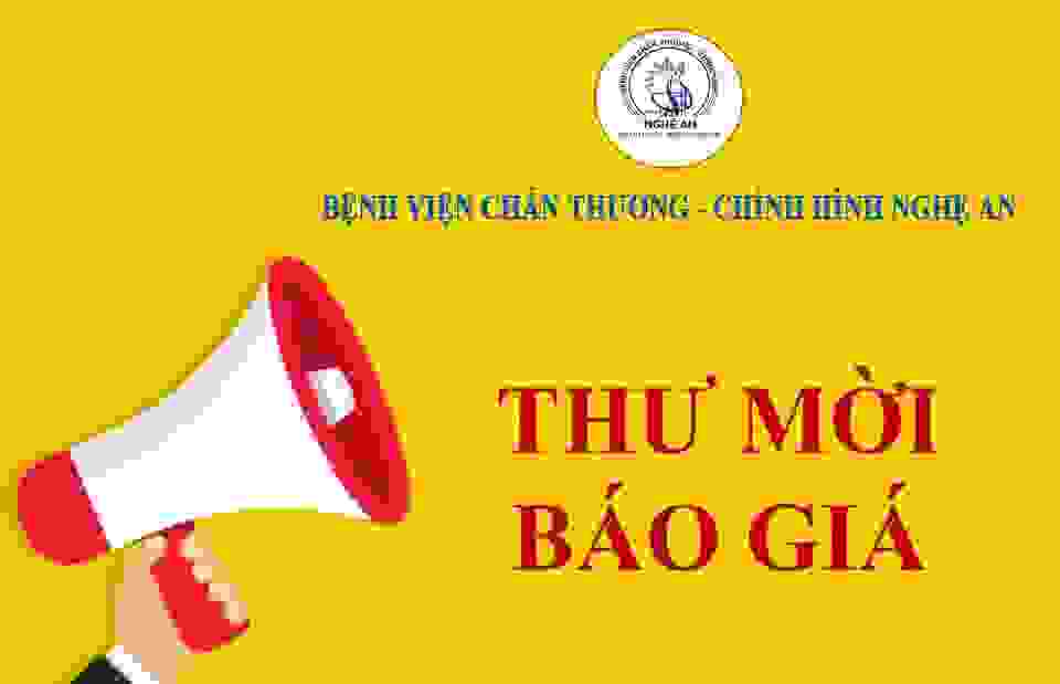 Bệnh viện Chấn thương - Chỉnh hình Nghệ An thông báo mời chào giá hóa chất vật tư y tế, mỹ phẩm năm 2023 như sau: