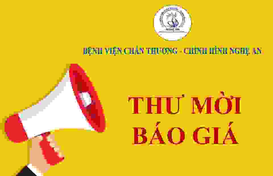 Thư yêu cầu báo giá về việc mua sắm linh kiện, phụ kiện, vật tư thay thế sử dụng cho thiết bị y tế phục vụ công tác chuyên môn tại Bệnh viện Chấn thương - Chỉnh hình Nghệ An