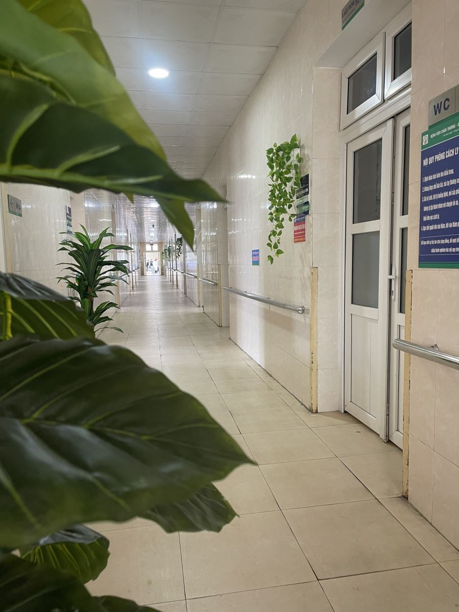 Bệnh viện được bao quanh bởi không gian xanh mát với nhiều cây xanh