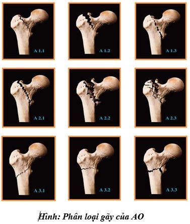 Các tác giả AO chia liên mấu chuyển xương đùi thành 3 nhóm chính A1 – A2 – A3; trong mỗi nhóm chính lại có 3 tiểu nhóm: A1.1; A1.2; A1.3;…