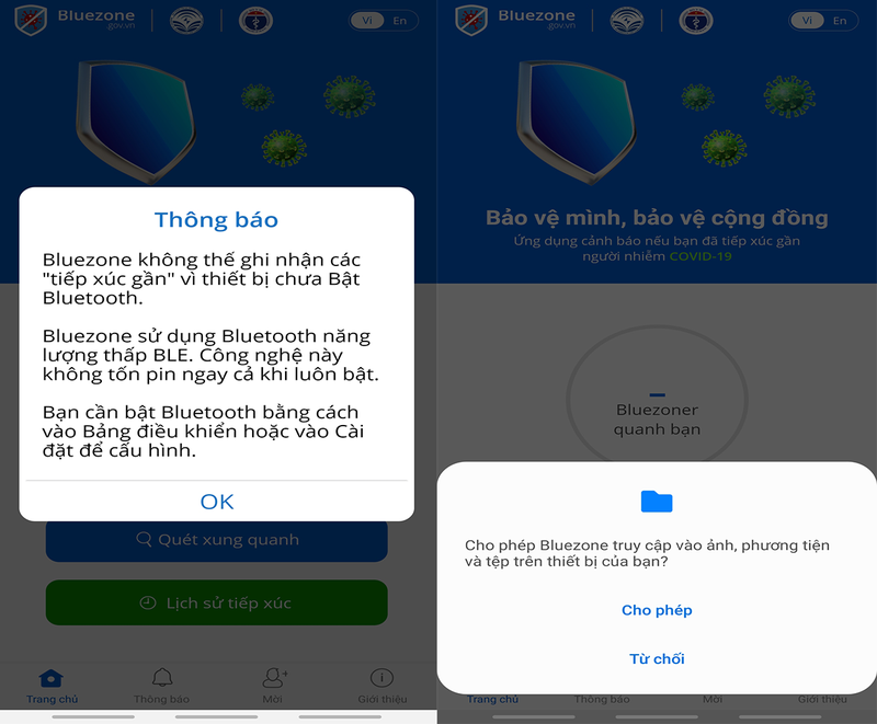 Bên cạnh đó ứng dụng cũng sẽ yêu cầu cho phép truy cập vị trí và truy cập một số thông tin của người dùng (việc cho phép truy cập này không sợ bị mất thông tin dữ liệu vì ứng dụng không thu thập những thông tin này) để nếu người bạn tiếp xúc hoặc có bất kỳ ca nhiễm mới nào nhiễm Covid-19, ứng dụng sẽ ngay lập tức gửi thông tin đến bạn.