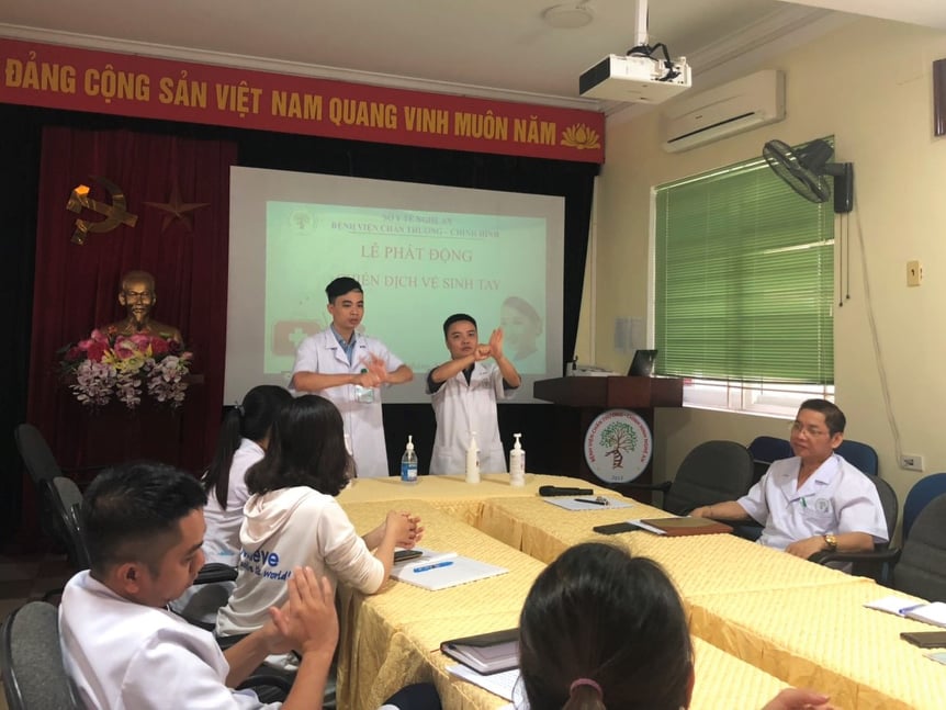 Hưởng ứng chiến dịch “Phòng ngừa nhiễm khuẩn do chăm sóc y tế - chính từ nơi bàn tay bạn” do Tổ chức Y tế Thế giới (WHO) phát động, ngày hôm qua, 7/11/2019, Khoa kiểm soát nhiễm khuẩn - Bệnh viện Chấn thương chỉnh hình Nghệ An đã tổ chức lễ phát động chiến dịch vệ sinh tay tới toàn thể nhân viên y tế. Toàn thể cán bộ công nhân viên Bệnh viện đã cam kết cùng nhau tuân thủ và thực hiện theo “5 thời điểm cần rửa tay đối với nhân viên y tế“ và “quy trình rửa tay 6 bước của Bộ y tế” để cùng chung tay chống lại nguy cơ nhiễm khuẩn.